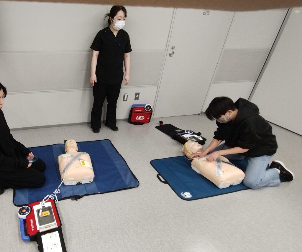 ▼こちらはCPRの実習を行なっている写真です。