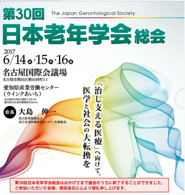 ※日本老年学会総会とは、数年おきに老年(高齢者医療)に関連する7学会共同で実施される大きな学会です。歯科に限らず多くの最新の知識を共有できる有意義な学会です。