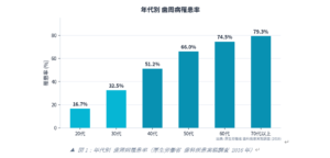 ▲ 図1:年代別 歯周病罹患率(厚生労働省 歯科疾患実態調査 2016年)